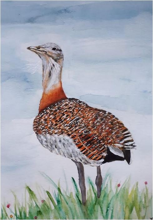 Großtrappe, Aquarell, Luisa Höppner