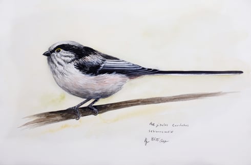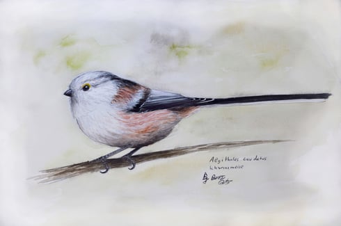 Studien zu Schwanzmeisen - 2, Aquarell und Gouache, 02/2022, Berrit Gartz