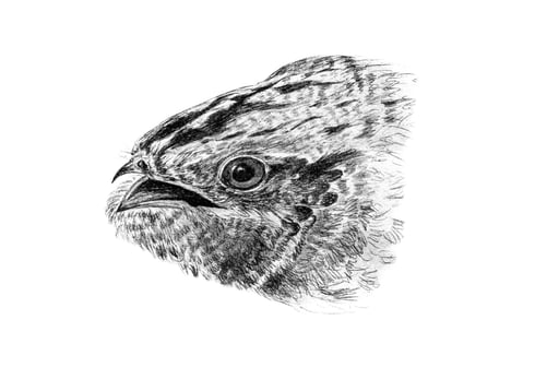 Portrait Ziegenmelker (Nachtschwalbe), Tusche, 03/2022, Berrit Gartz