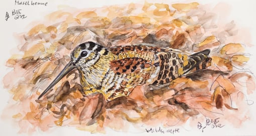 Waldschnepfe, Aquarell- und Gouachefarben, Berrit Gartz