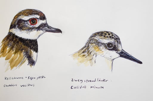 Limikolenstudien, Aquarell mit Gelstift, Berrit Gartz