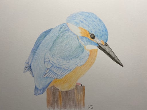 Eisvogel, Kohle coloriert, Nicola Glaser