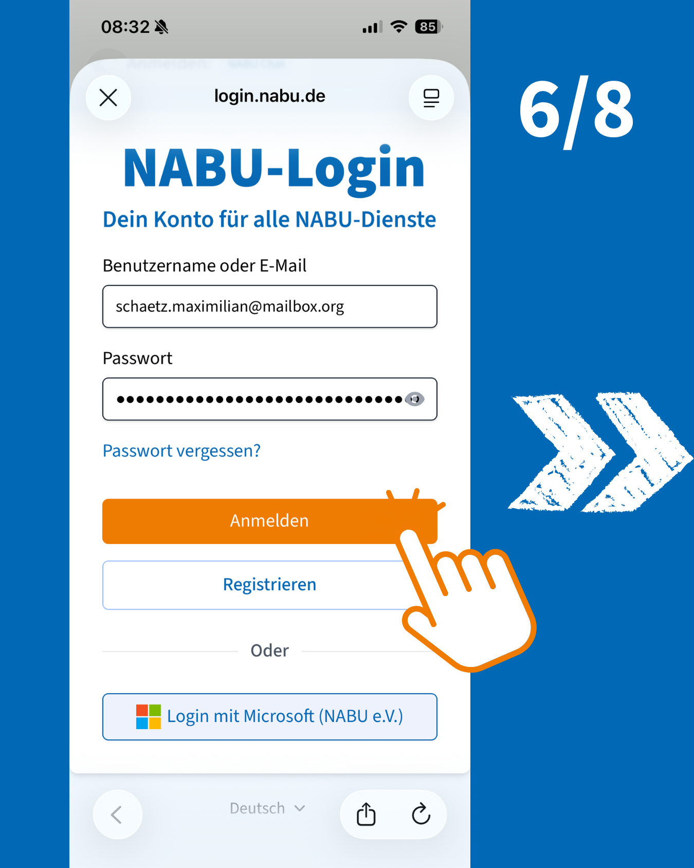 kannst Du Dich mit den gleichen Anmeldedaten wie im NABU-Netz anmelden.